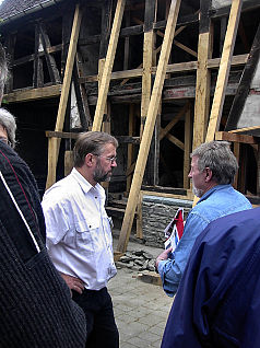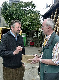 ![]() Chef der Lehmbaufirma Linnemannstöns im Gespräch mit Herrn Droste |